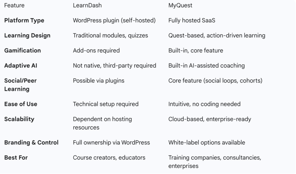 MyQuest vs LearnDash: Choosing the Right Platform for Scalable, Engaging Training